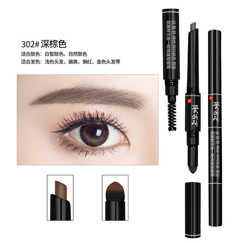 花美时三合一自动旋转双头眉笔眉粉染眉膏画眉持久防水防汗不脱色 防水防汗 持久不晕染 正品包邮